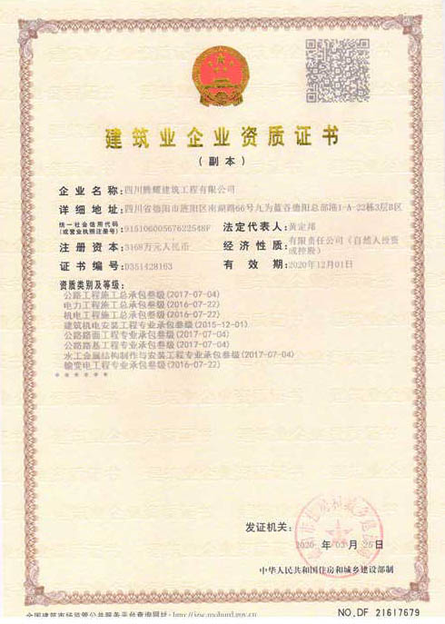 四川騰耀建筑工程有限公司  地址:四川省德陽市旌陽區(qū)南湖路66號(hào)九為藍(lán)谷德陽總部港1-A-22棟1層  電話:0838-2507855